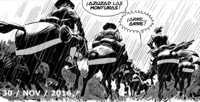 Guión y dibujo de Joan Mundet (dibujante de Alatriste, con la colaboración de Pepe Gálvez en el guión)