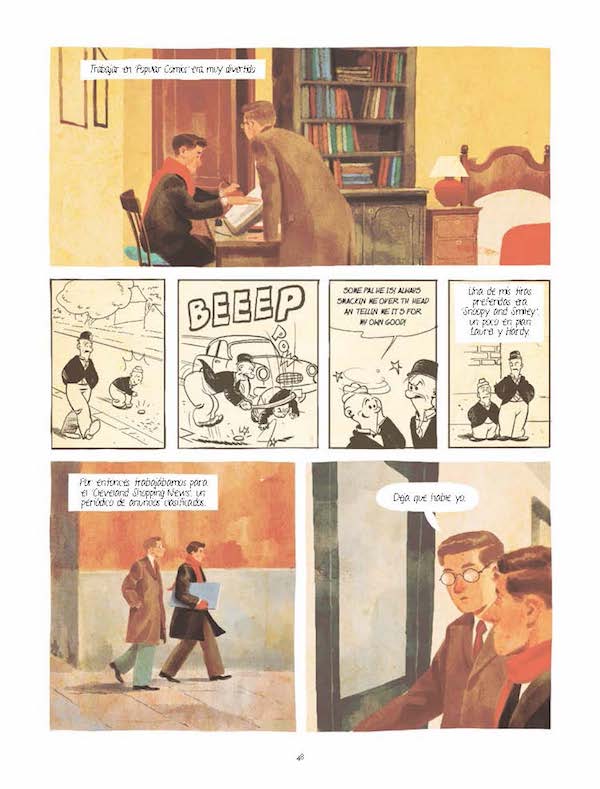 La historia de Joe Shuster cuenta la creación del personaje de Superman a finales de los años 30. Desde cómo se conocieron los autores y dieron vida al personaje hasta como intentaron vender el proyecto a las editoriales para que al final fueran explotados, engañados y despojados de sus derechos. La narración comienza con una primera viñeta ficcionada que sirve de excusa para contar la historia a través de los flashback. A partir de ahí, los hechos que nos cuentan los autores están inspirados en la vida de Joe Shuster y Jerry Siegel, dibujante y guionista de Superman, respectivamente.